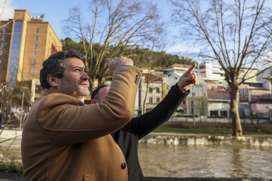 André Ventura deslocou-se esta quinta-feira ao centro da cidade de Leiria para observar os danos causados pela passagem da tempestade Kristin, dizendo-se “profundamente impressionado” com o “nível de destruição” encontrado no terreno.